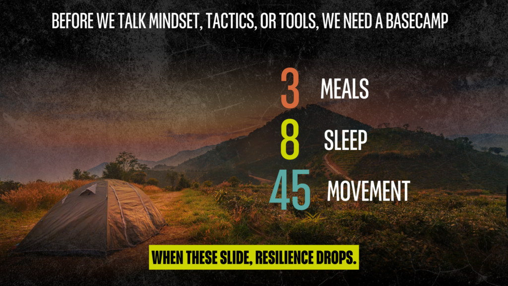 If you can keep returning to the basics — meals, sleep and movement — you give yourself a foundation that supports resilience in a way that motivation alone never can.